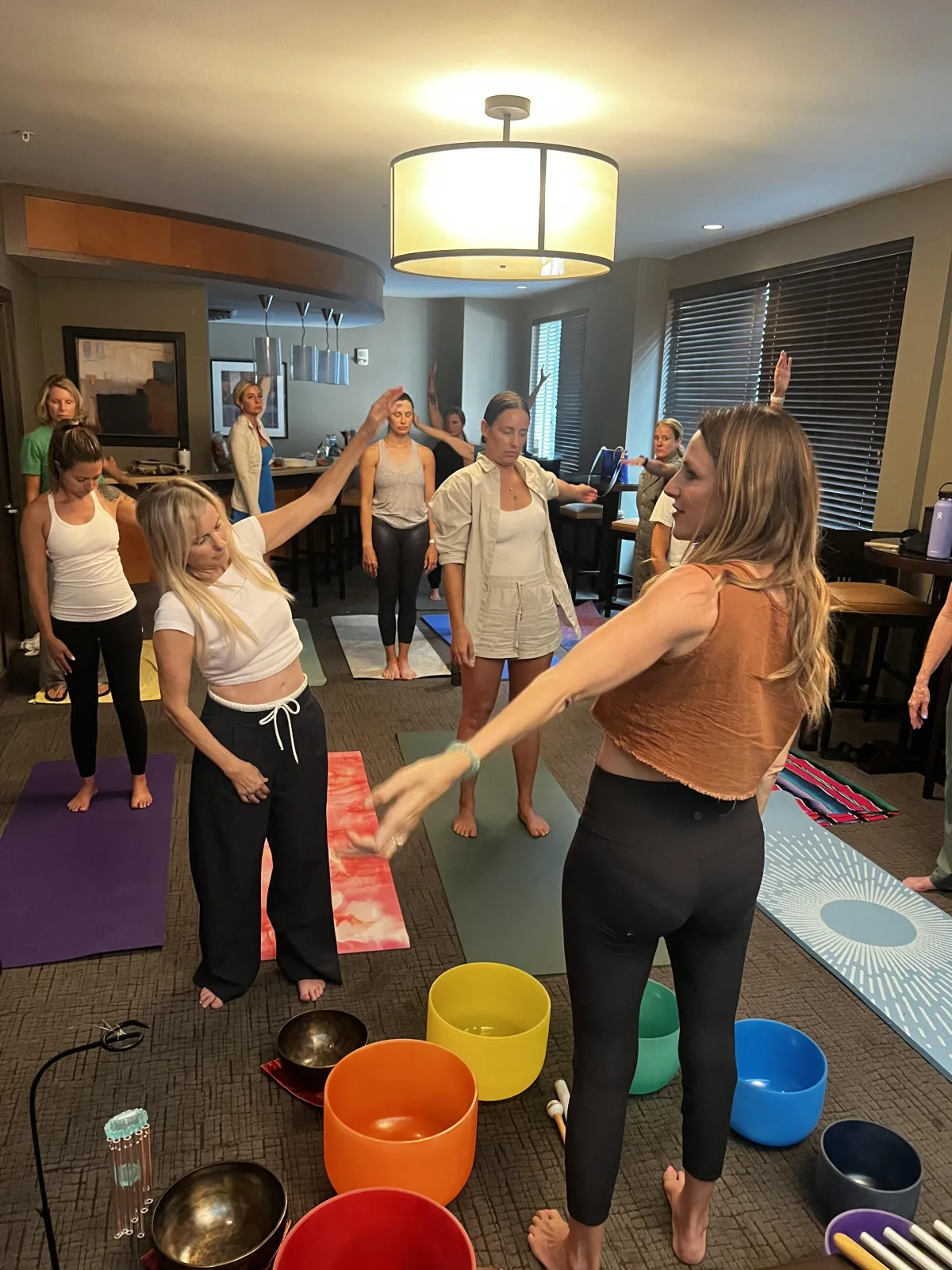 A yoga mat & snacks or drinks for the community table